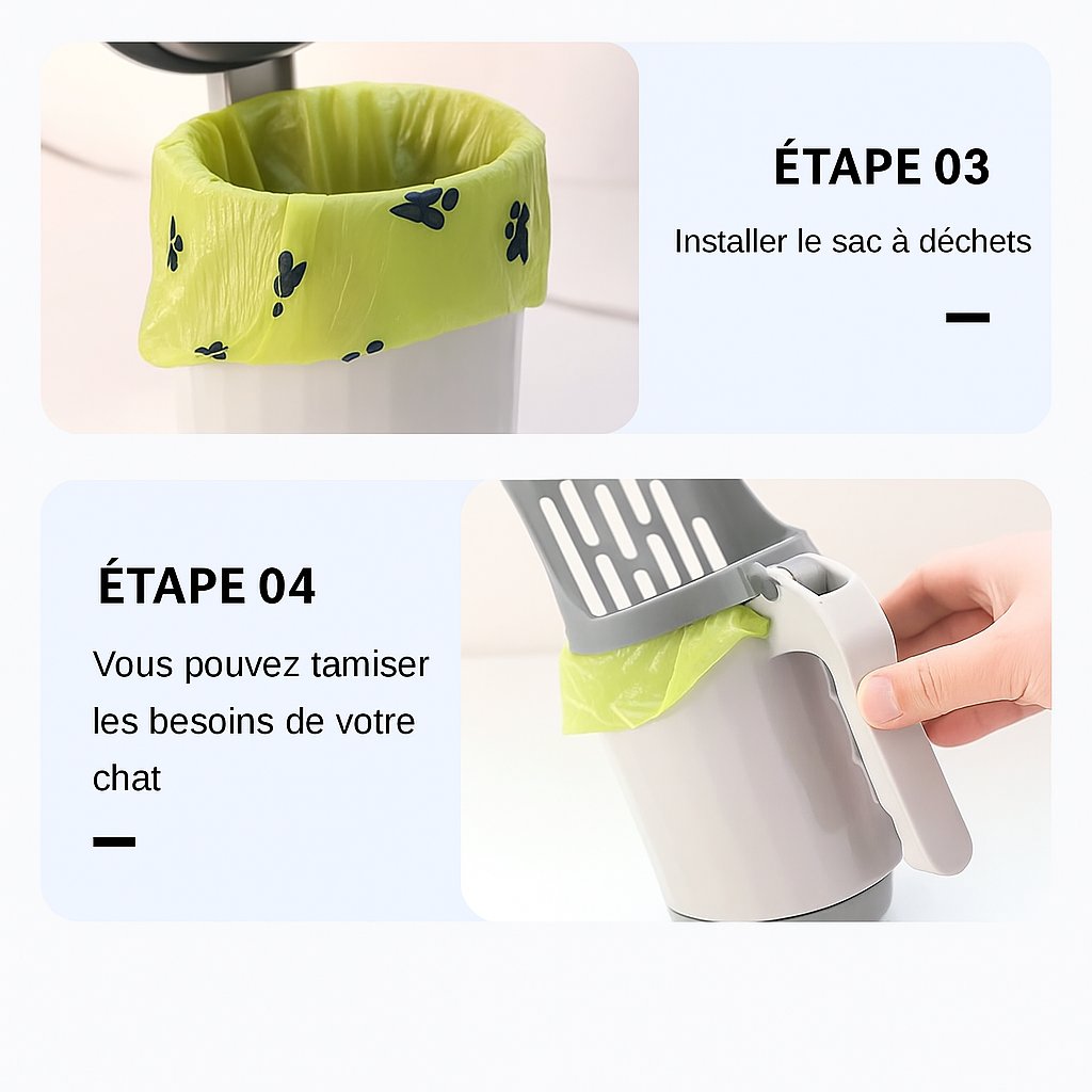 Simplifiez le nettoyage du bac de votre chat avec notre pelle à litière multifonction ultra pratique.